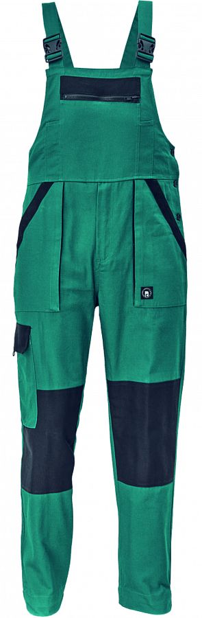 • pánské pracovní kalhoty s laclem a elastickým pasem • široké šle s plastovými sponami • 2 přední kapsy, 1 stehenní kapsa • 1 velká náprsní kapsa, 2 zadní kapsy • zesílená oblast kolen • nastavitelná délka nohavic