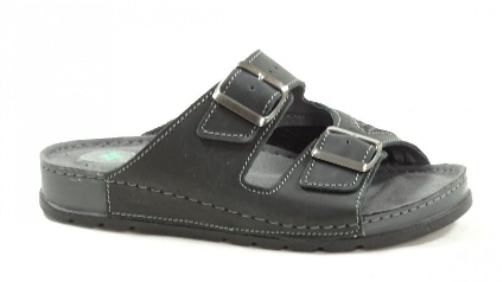 Dámský černý pantofel,na pohodlném klínku s anatomicky tvarovanou stélkou. Jsou určeny jako zdravotní, pracovní, domácí či vycházková letní obuv. Nastavitelná šíře obuvi - na dvě přezky, regulujete si šířku dle vlastní potřeby.